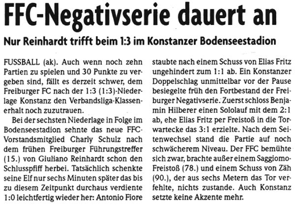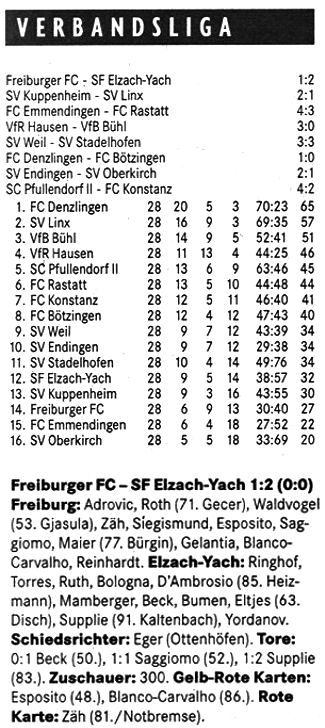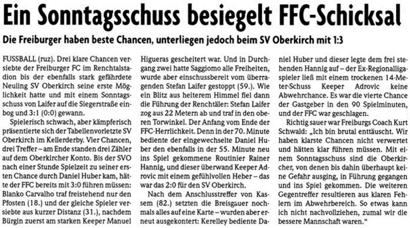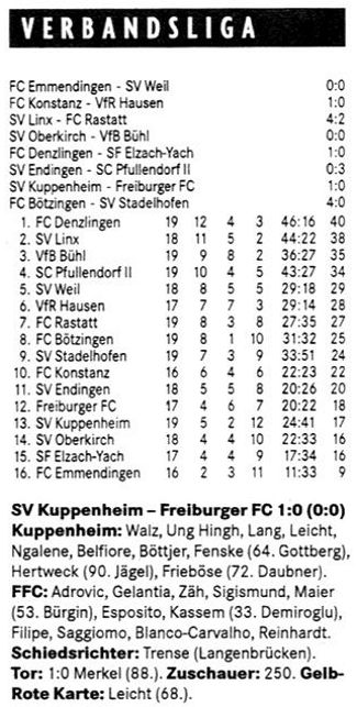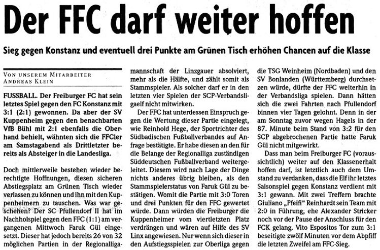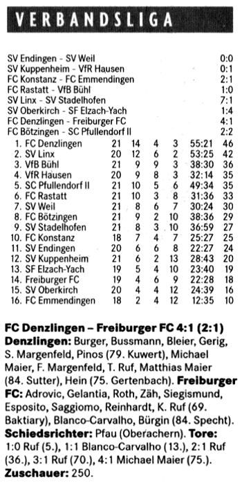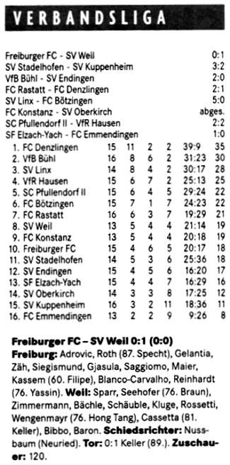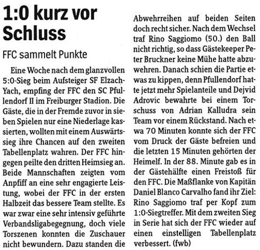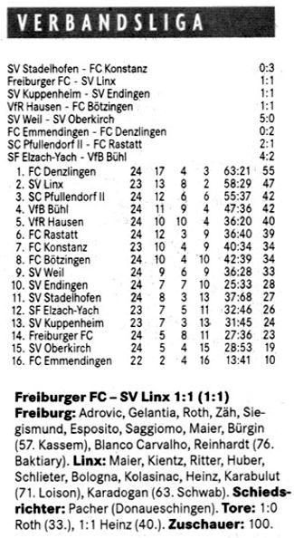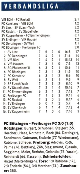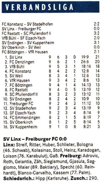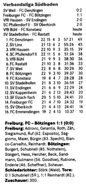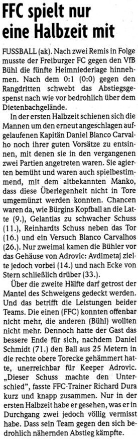 Diese Spielzeit war die Erste, die der Freiburger FC in seiner neuen Heimstätte, dem Dietenbach-Sportpark verbrachte. Nach der langen Ära von Maxi Heidenreich und der Interimsphase mit Richard Dura, wurde zu Beginn dieser Spielzeit mit Kurt Schwald ein neuer Trainer verpflichtet. Sportlich verlief diese Saison durchwachsen. Am Ende stand man auf dem 13. Tabellenplatz, was den Abstieg in die Landesliga nach sich zog. Auch der Trainerwechsel sechs Spieltage vor Saisonschluß, Richard Dura hatte den Job erneut übernommen, konnte den Abstieg nicht mehr verhindern.